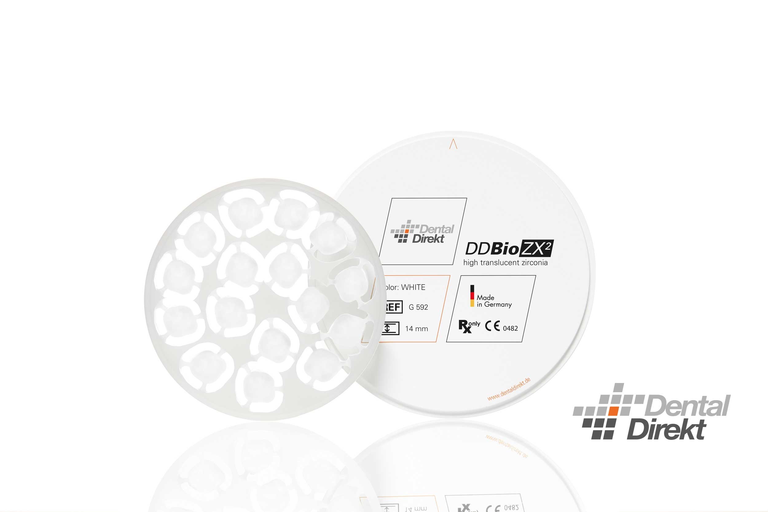 DD Bio Z er et materiale som skiller seg ut med svært høy bruddstyrke og hydrotermiske egenskaper. Materialet har en absolutt homogen materialstruktur som kommer til gjennom en spesialutviklet produksjonsprosess. Dette gir en overlegen materialstabilitet, også i usintret tilstand, som gir en zirkonia-type som kan freses raskt og som er enkel å bearbeide.